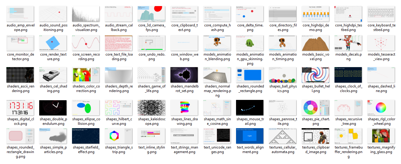 NEW+70 new examples: Thanks torexmand the simplification on examples management, this new raylib release includes +70 new examples to learn from, most of them contributed by community. Multiple examples have also been renamed for consistency and all examples header and structure have been reviewed and unified.