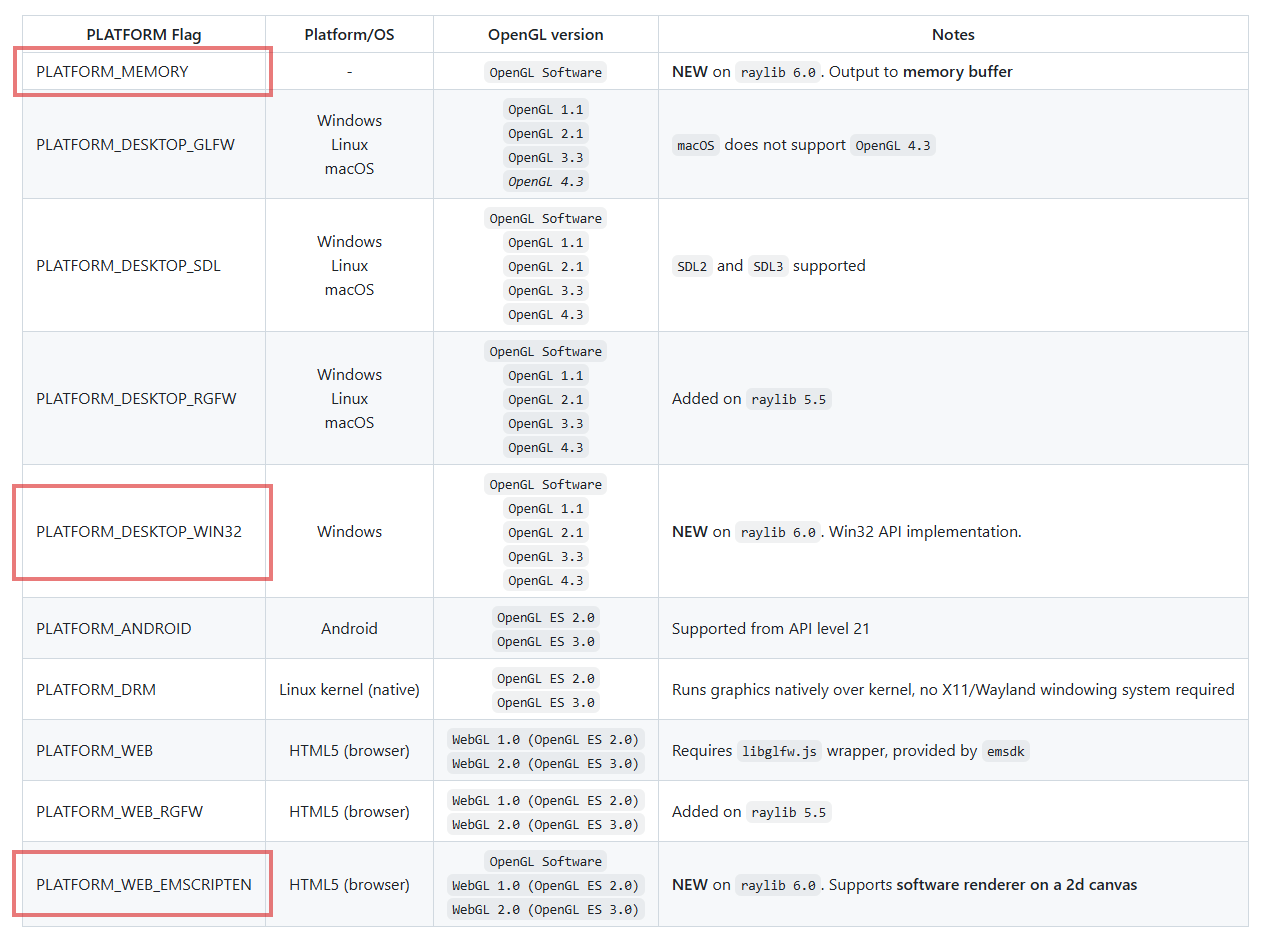 NEWSoftware Renderer -rlsw: The biggest addition of this new release. A new software renderer backend, that allows raylib to run purely on CPU, with no neeed for a GPU. It finally closes the circle of my search for a portable self-contained, with no-external-dependencies, graphics library, able to run on any device providing some CPU-power and some RAM memory. It has been possible thanks to the amazing work of Le Juez Victor (@Bigfoot71), who createdrlsw, a single-file header-only library implementing OpenGL 1.1+ specification, tailored to fit into raylibrlglOpenGL wrapper, and allowing to run raylib seamlessly over CPU with no code changes required on user side. As expected, software rendering is slower than hardware-accelerated rendering but it is still fast enough to run basic application at 30-60 fps. Actually, it already proved it usefulness on a new raylib port for ESP32 microcontroller by Espressif, useful for industrial applications, and opens the door to the upcoming RISC-V powered devices that start arriving to the marked, and many times come with no GPU. Along the new software renderer, some of the existing platform backends have been adapted to support it (SDL, RGFW, DRM) and also new platforms backends have been created to accomodate it (Win32, Emscripten), incluing a newPLATFORM_MEMORY, that allows direct rendering to a memory framebuffer. -